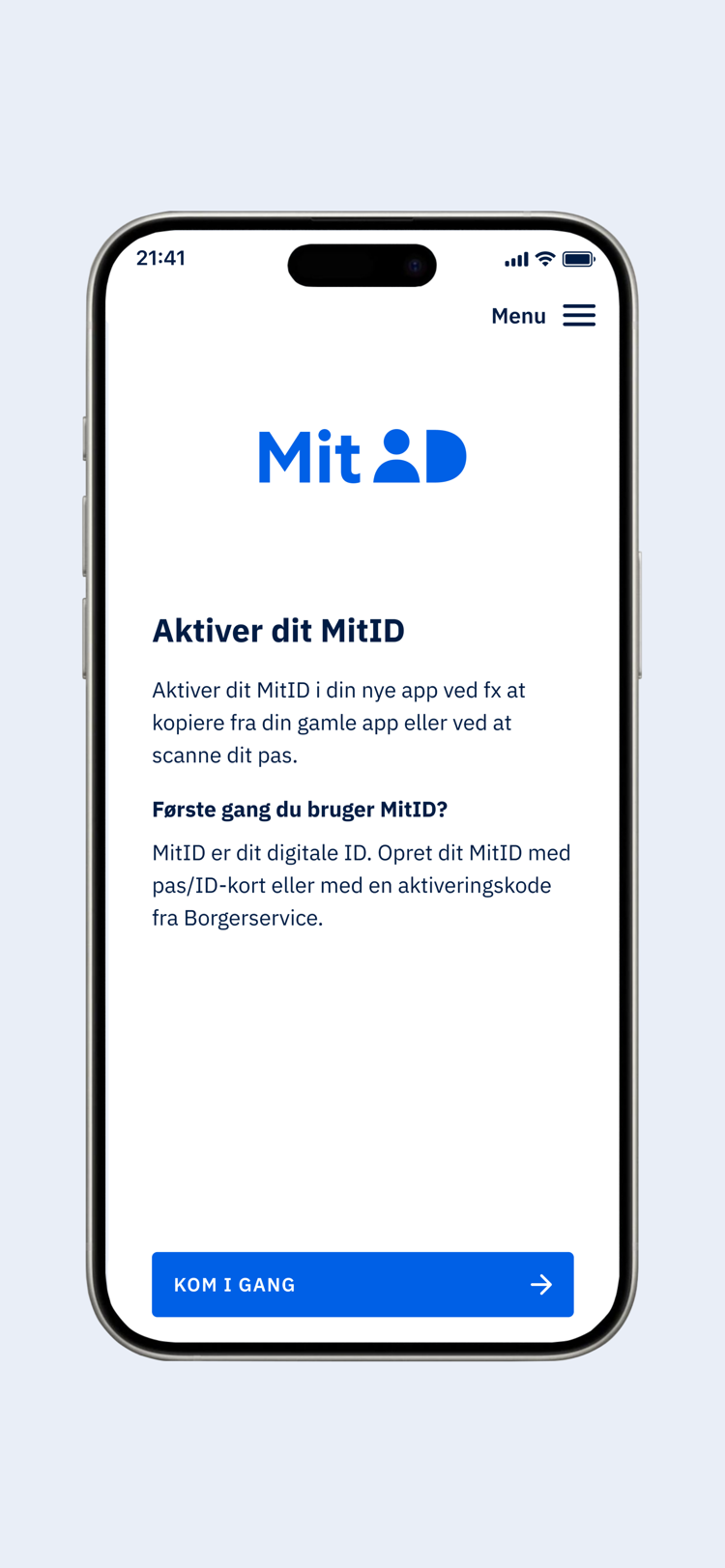 1. Download the MitID app from the Danish Agency for Digital Government in the Apple App Store or in the Google Play.