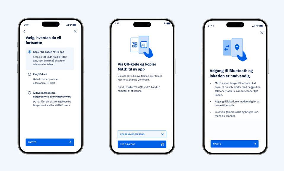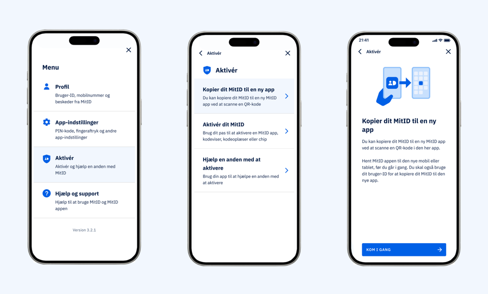Hvis du har fået en ny telefon/tablet, eller vil have MitID på flere enheder, kan du kopiere dit MitID fra én telefon/tablet til en anden ved at scanne en QR-kode i MitID appen. På den måde kan du nemt aktivere din MitID app. Det er nemlig ikke nok bare at downloade MitID appen, den skal aktiveres, før den kan bruges.