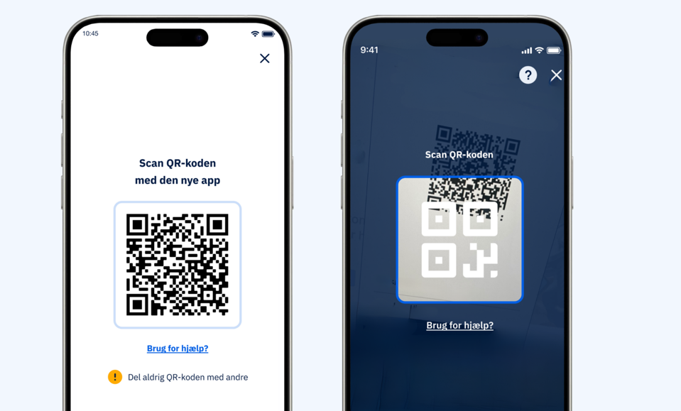 Du får nu vist en QR-kode, som skal scannes med din nye telefon/tablet.
